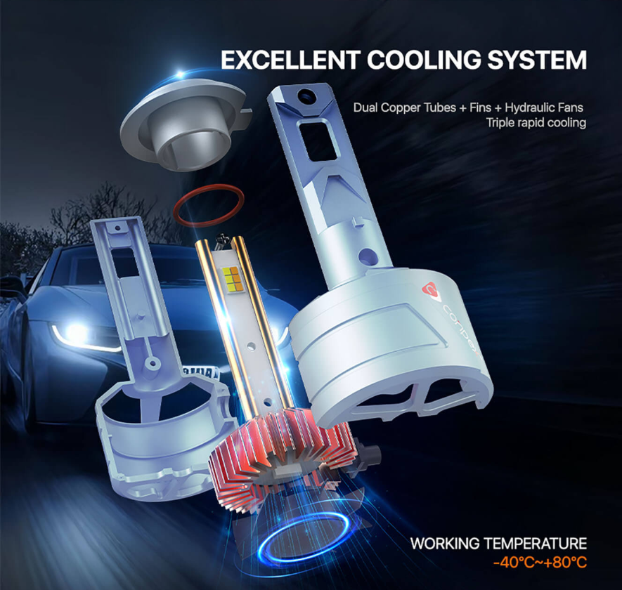 Top-tier LED headlights incorporate sophisticated cooling systems, such as:High-Speed Fans: Actively pull heat away from the LED chips.