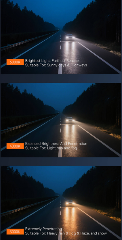 This range produces a crisp, daylight-white light that enhances contrast and makes it easier to spot obstacles and read road signs at night, reducing eye strain and improving reaction time.